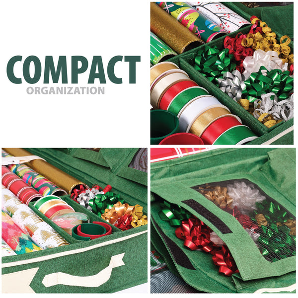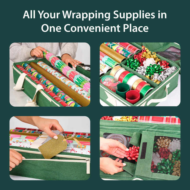 Premium Gift Wrapping Paper Storage Organizer with Exclusive Pockets, Center Flap and Ribbon Box Wrap Paper Container By Hearth & Harbor. The ultimate Christmas wrapping paper storage containers for wrapping paper and supplies. Our top rated new design wrapping paper storage box you get the best choice to keep your gift wrap neat with less waste. Keeps your paper protected against dust and moisture, so you can stop throwing the wrapping paper to the back of the closet.